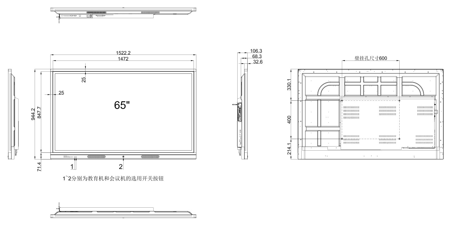 65寸教学一体机规格尺寸