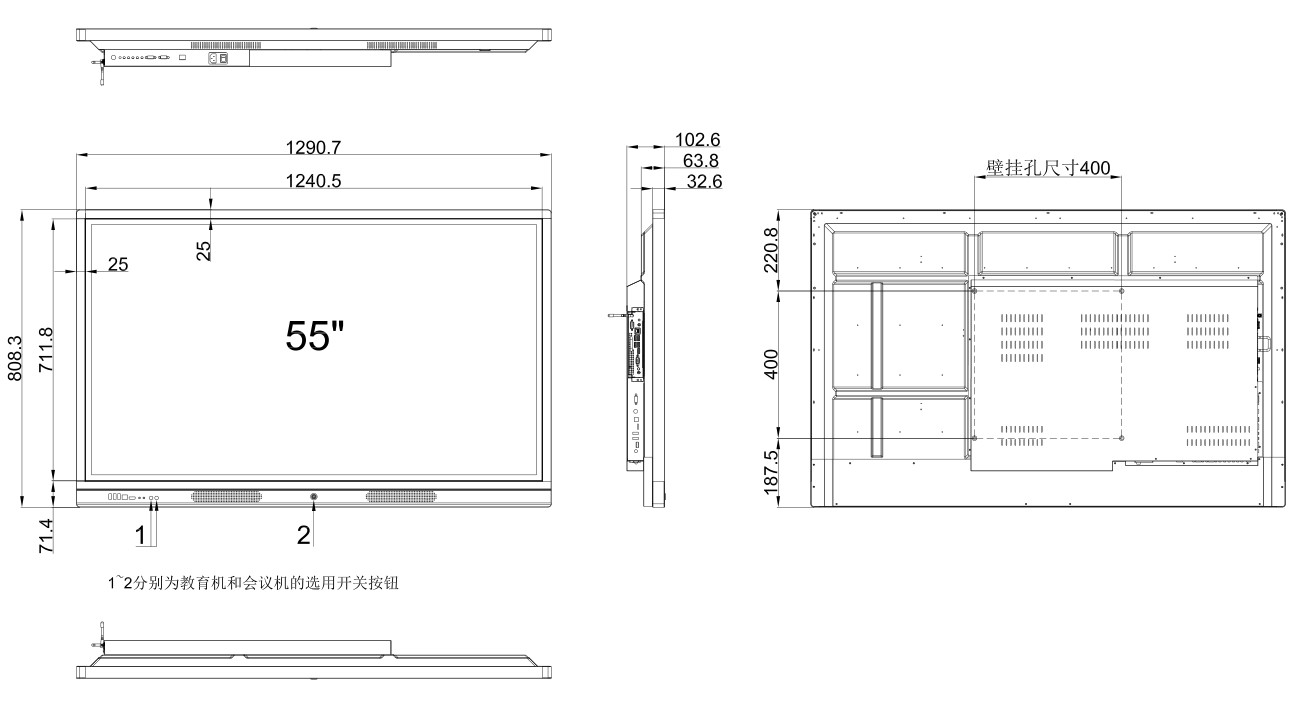 55寸教学一体机规格尺寸