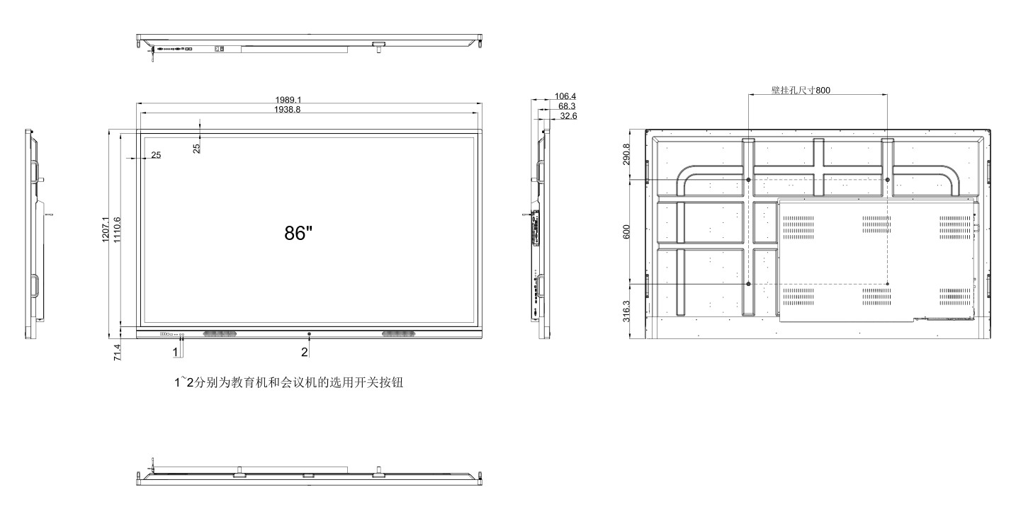 86寸教学一体机规格尺寸