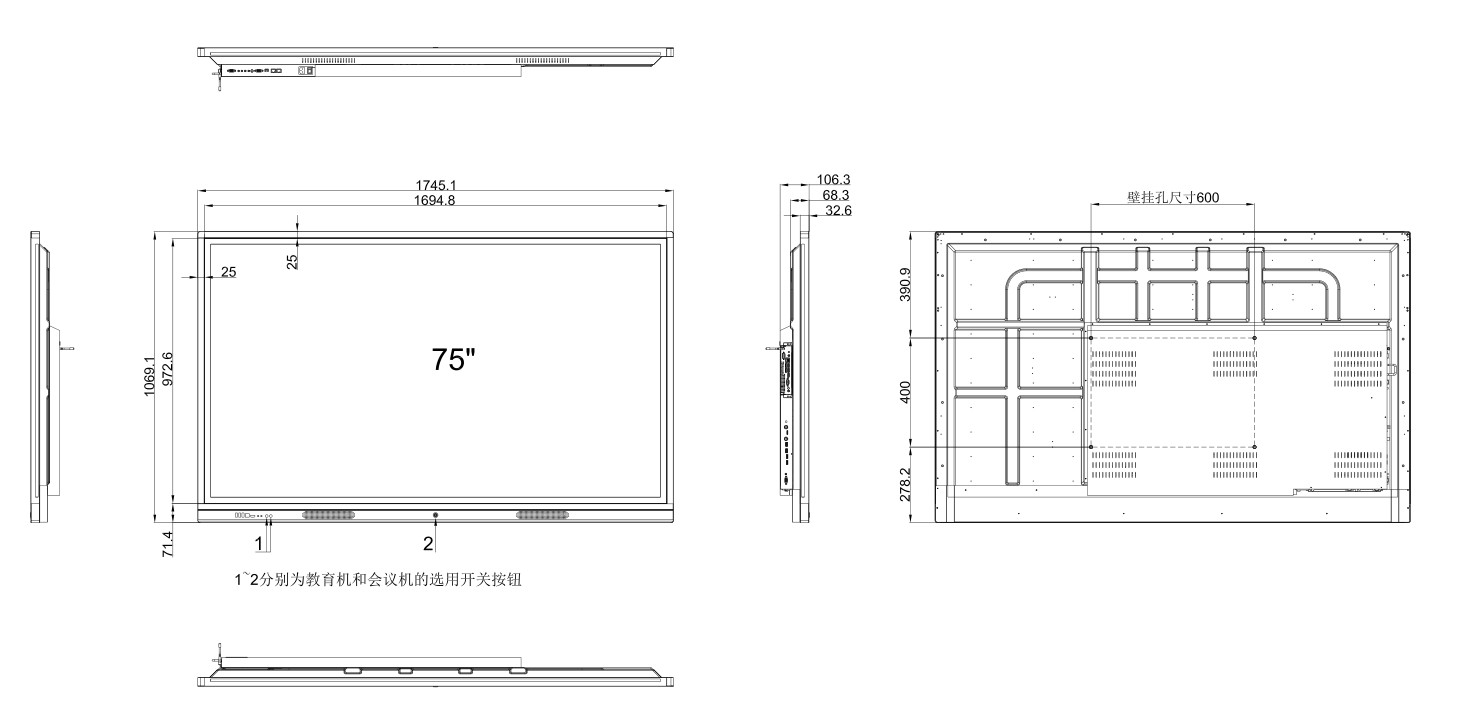 75寸教学一体机规格尺寸