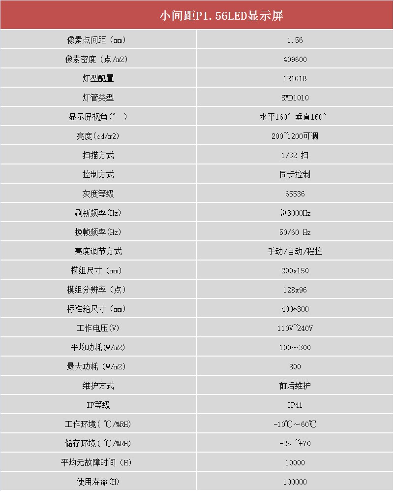 特点:P1.56小间距全彩LED显示屏