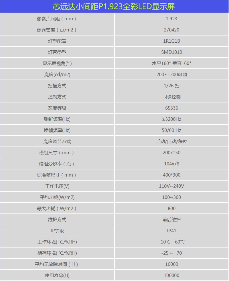 特点:P1.923小间距全彩LED显示屏